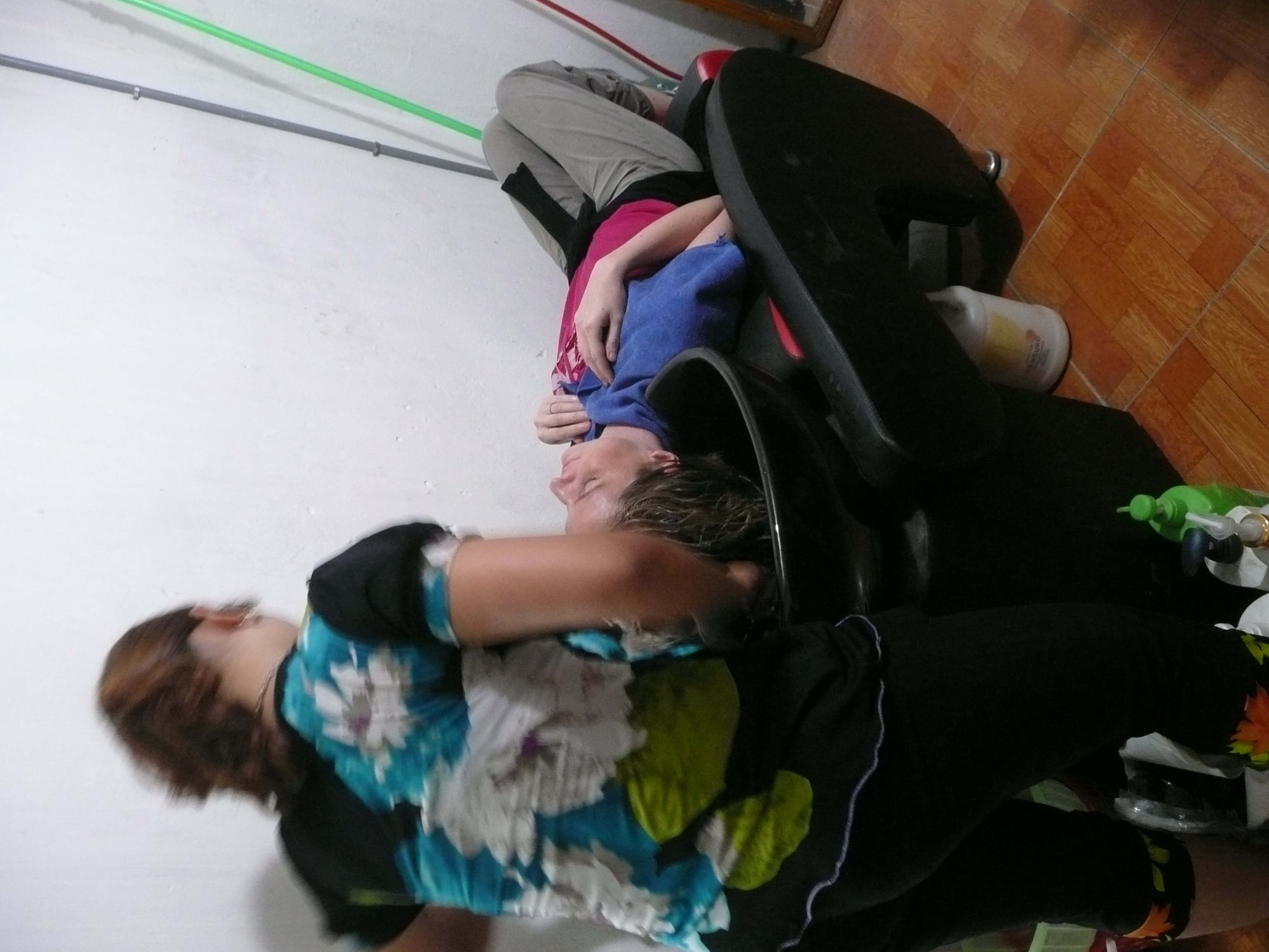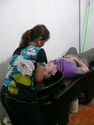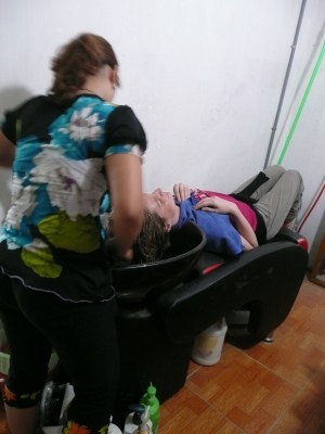 Dans un salon de coiffure a Tan Quang: lavage des cheveux et message au visage avec 1,5 euros